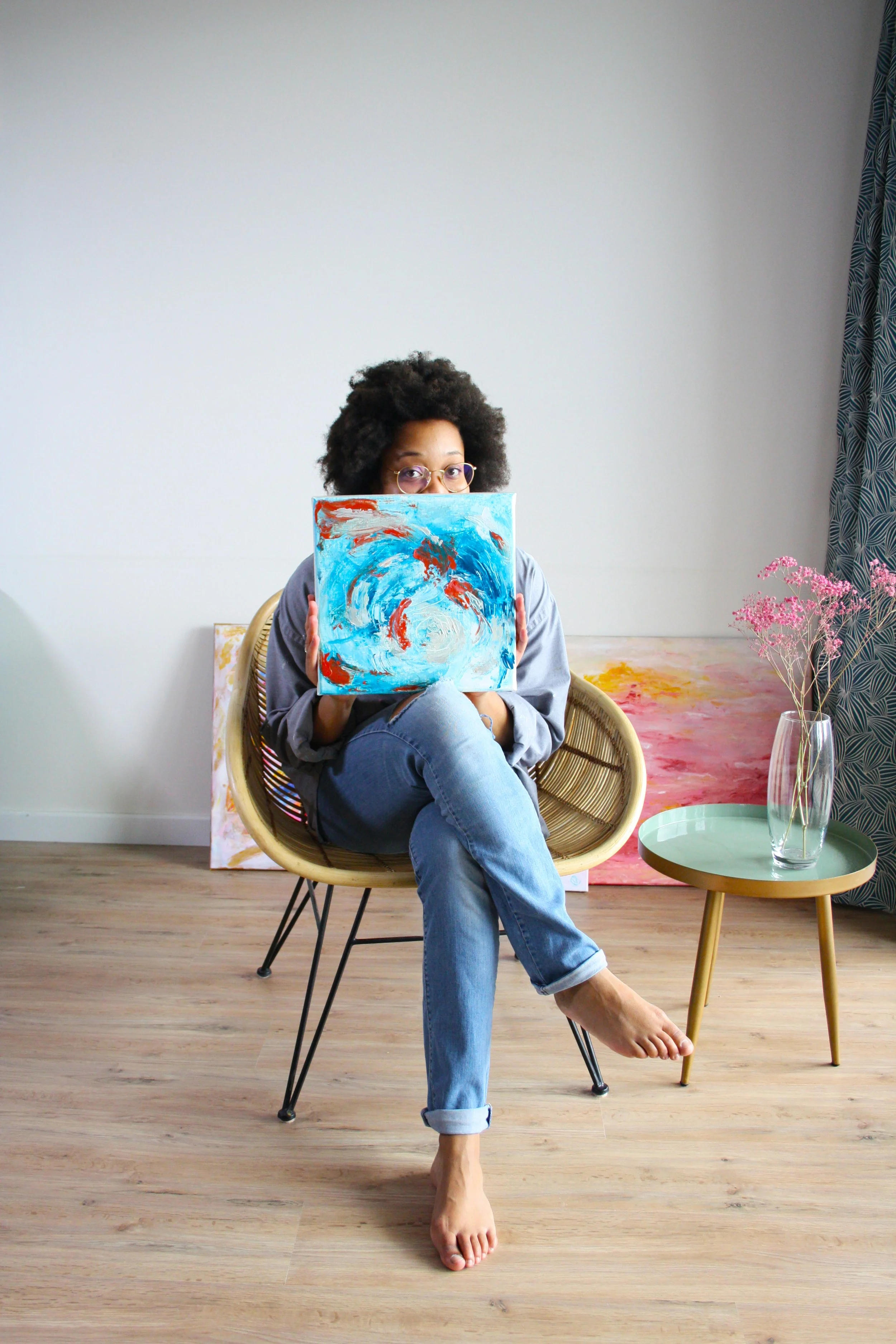 Of Caribbean descent, she was surrounded by vibrant and intense colors from a very young age. The lush flora and fauna of the Antilles inspired her colorful and luminous world. Her childhood was filled with 1990s animated series, tales and stories, visual arts, and dance. All of this material would nourish her inner imagination and creativity over the years.